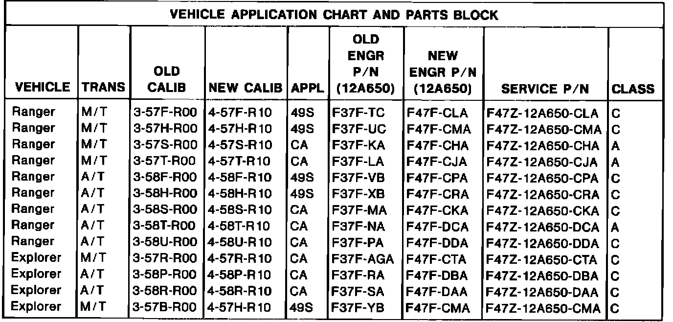 STALLS - AFTER COLD START - ALL 4.0L RANGER MODELS AND ALL EXPLORER MODELS EXCEPT 49S A/T