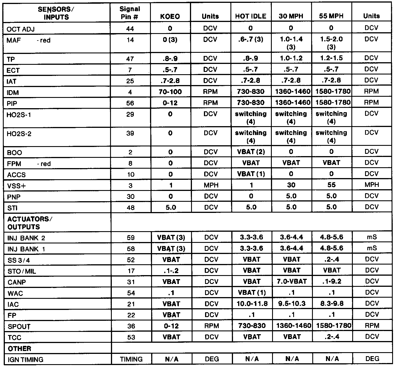 (4) -- HO2S should switch from rich (red LED) to lean (green LED), or lean to rich, at least once every 3 seconds. HO2S voltage should toggle above and below .450 DCV and should never be a negative value.