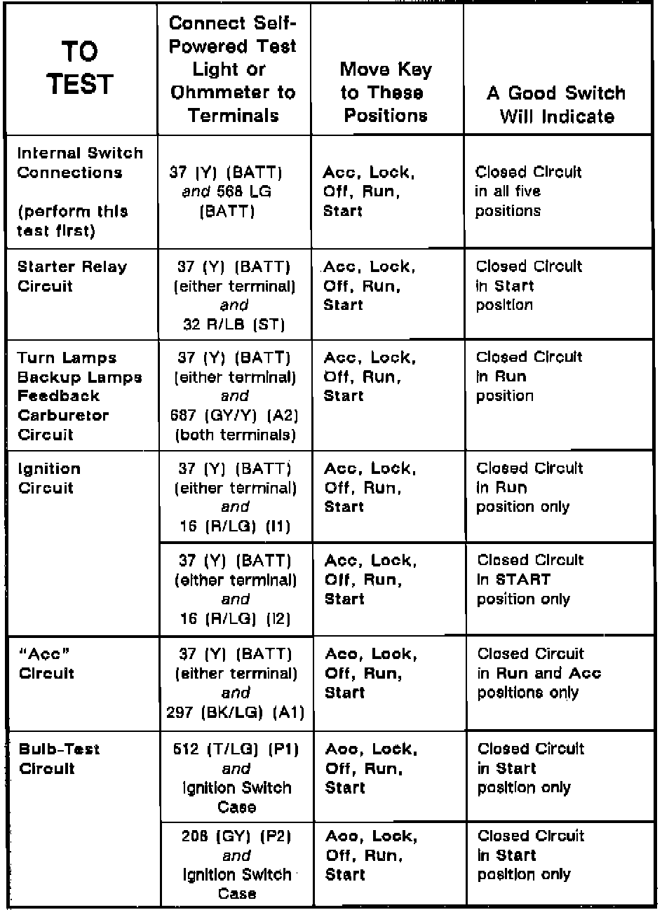 Ignition Switch: Testing and Inspection