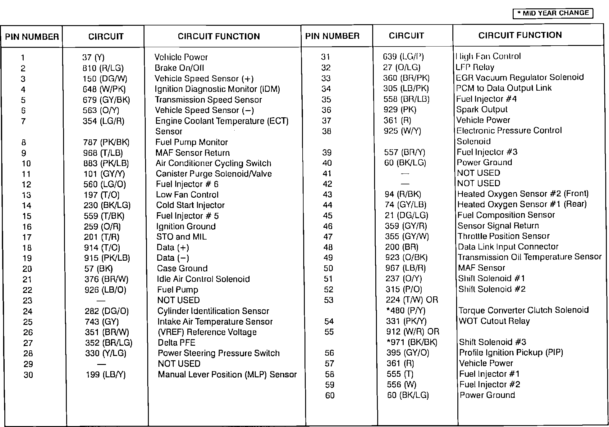 Taurus V6-182 3.0L VIN 1 FI Flex Fuel