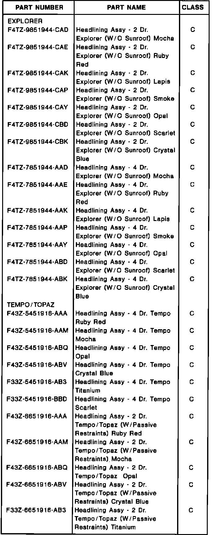 1992-94 COUGAR, SABLE, TOPAZ