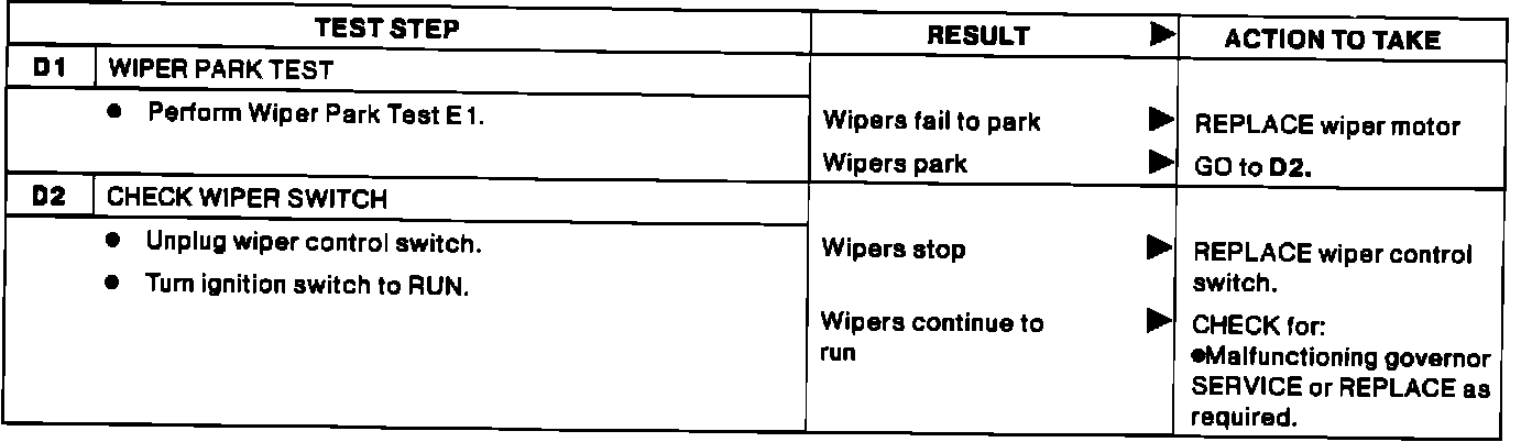 Test D - Wipers Run With Control Switch Turned Off: