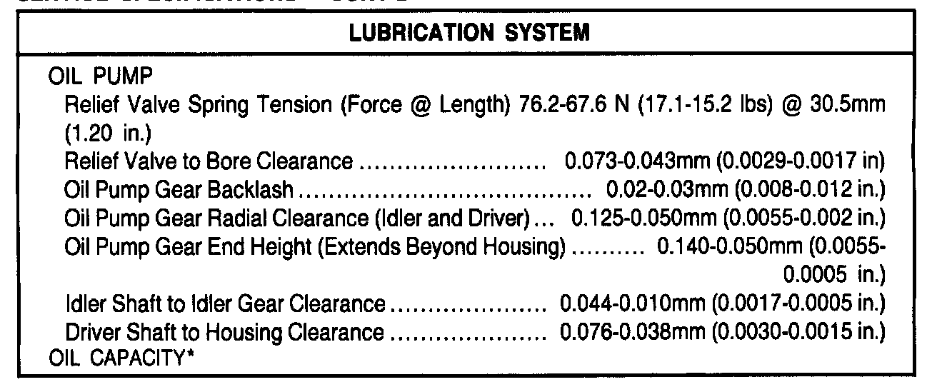 (1) 20-200 seconds to Leakdown 3.18 (0.125 in) with 225 Newtons (50 pounds) load and tappet filled with Leakdown fluid.