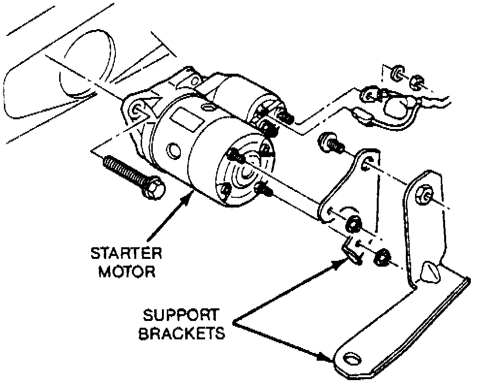 5. Reverse procedure to install. Torque starter motor retaining bolts to 23-34 ft lb.