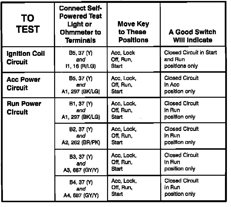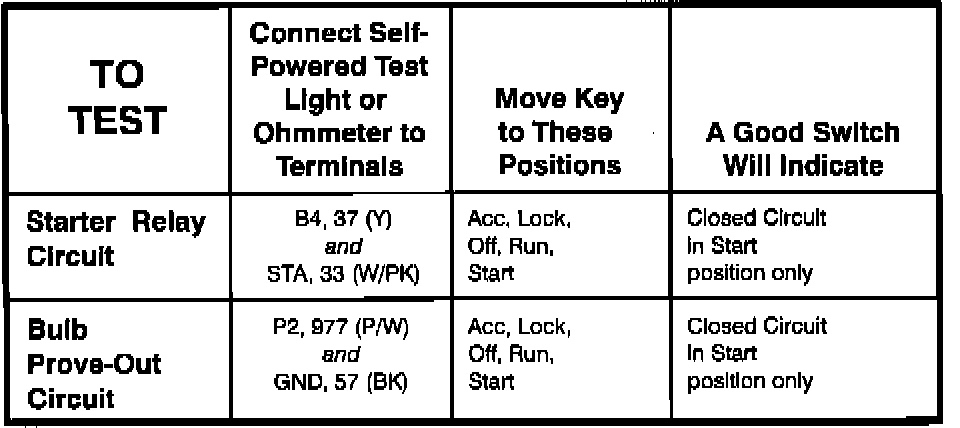 Ignition Switch: Testing and Inspection