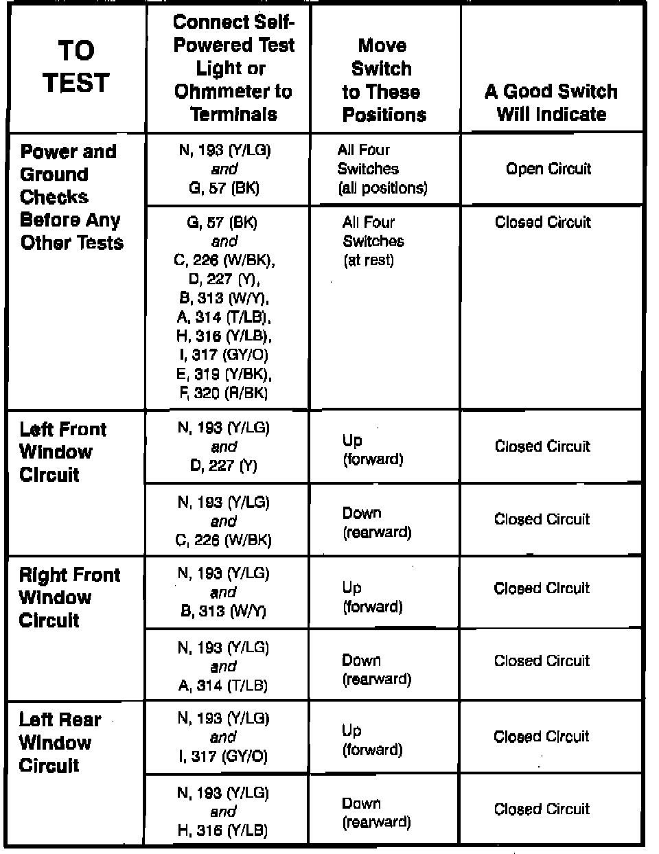 Component Testing Procedure-Window Circuits: