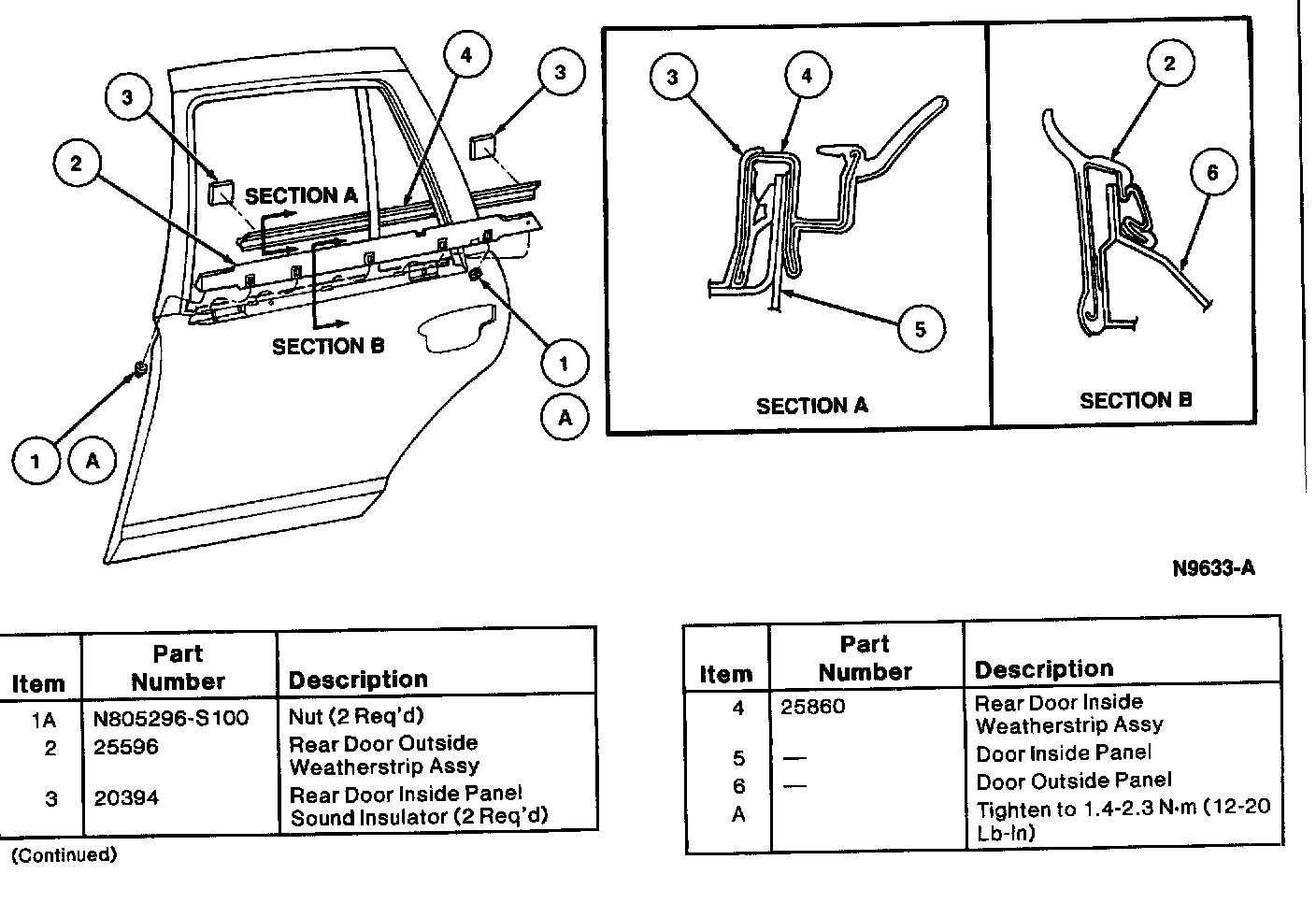 4. Install glass run retaining screw and washer assemblies. Tighten to 9-14 N-m (7-10 lb-ft).
