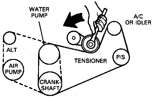 ^ Rotate arm against drive belt causing the drive belt tensioner to deflect approximately 1/2 inch from its rest position. Slowly release tension from arm and measure belt tension.