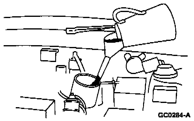 4. Place a funnel into the Vehicle Speed Sensor (VSS) mounting hole.