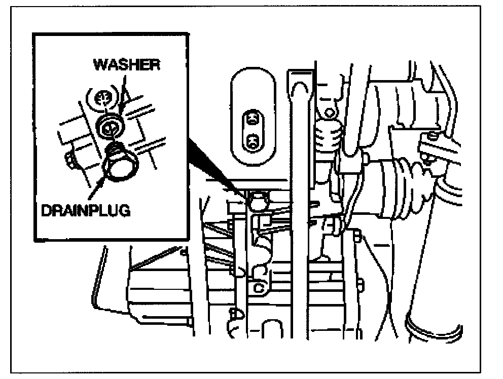 3. Remove the drain plug and drain the fluid into a suitable container.
