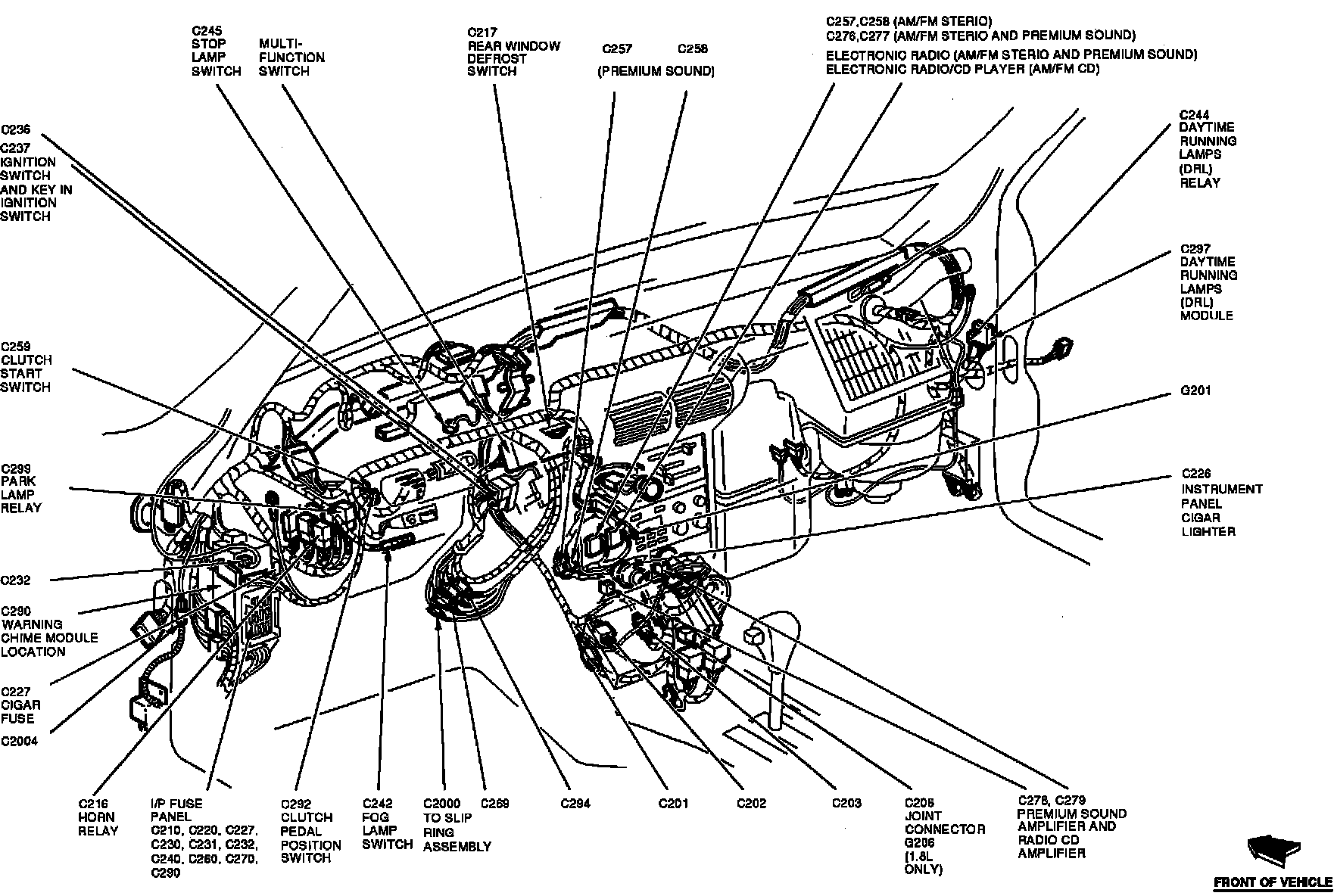 The Warning Chime Module is located behind LH side of I/P, on rear of I/P fuse panel.