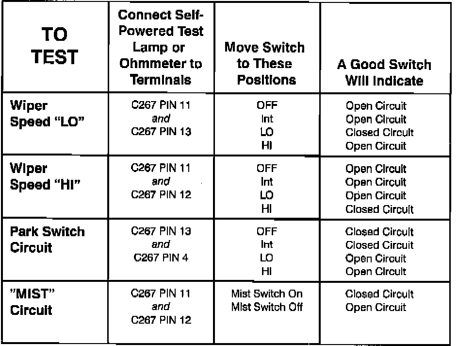 Windshield Washer Switch: Testing and Inspection