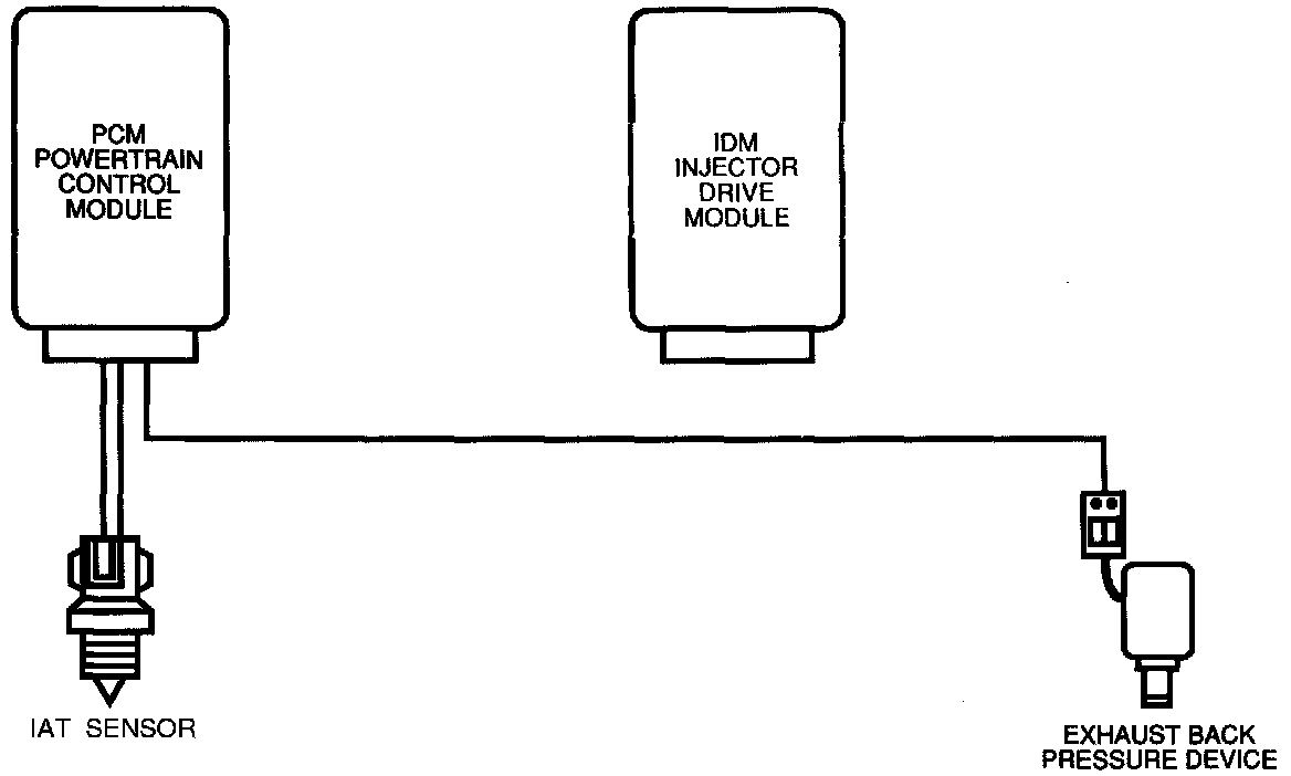 An IAT signal that is detected out of range high or low by the PCM will cause the engine to ignore the IAT signal, disable exhaust back pressure operation and assume an ambient temperature of 59°F (15°C).
