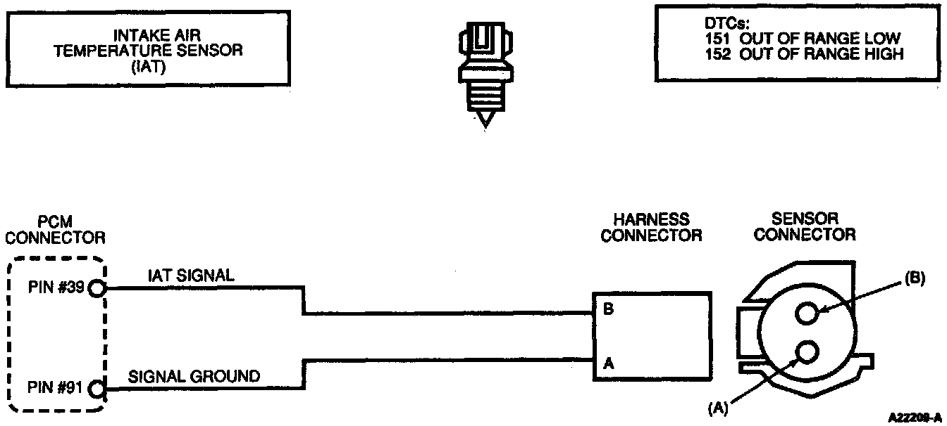 The Intake Air Temperature (IAT) sensor is a thermistor-type sensor with a variable resistance that changes when exposed to different temperatures. When interfaced with the Powertrain Control Module (PCM), it produces a 0 to 5 volt analog signal that will measure temperature.