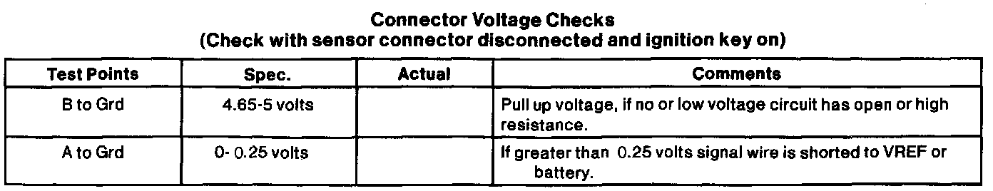 Check with sensor connector disconnected and ignition key and all accessories OFF.