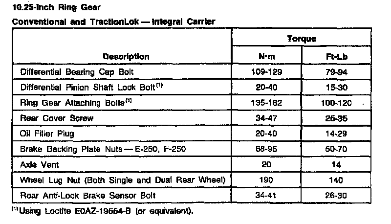 Ford 10.25 Inch/Traction Lok 10.25, Differential Torque: