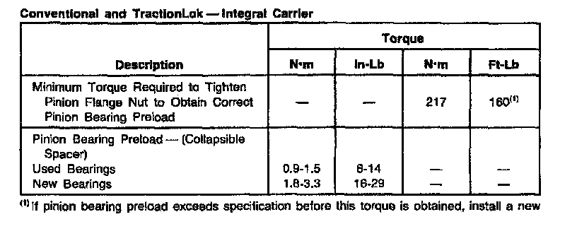 Ford 10.25 Inch/Traction Lok 10.25, Pinion Preload Torque: