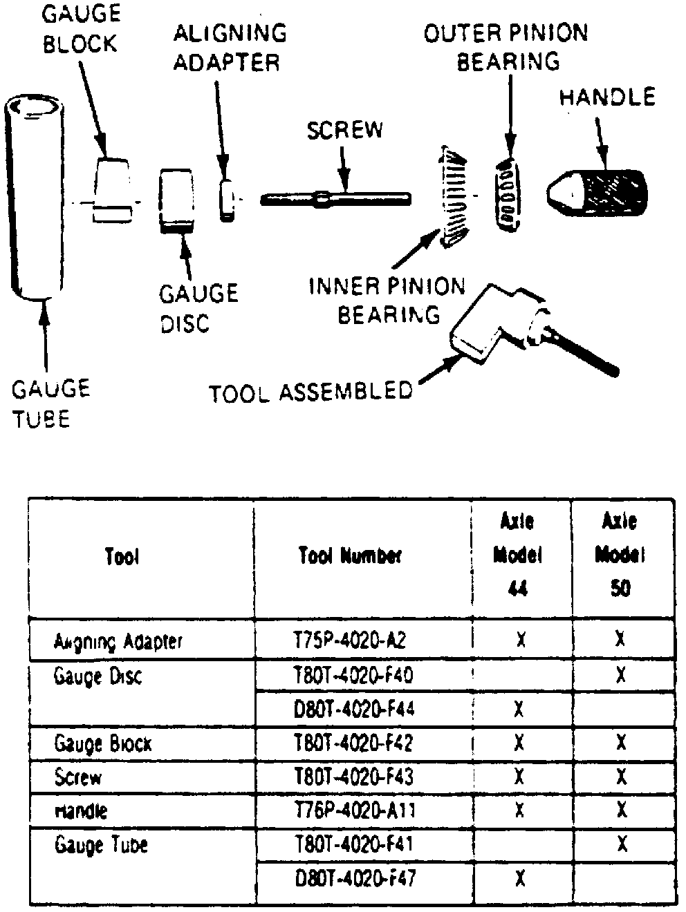 1. Refer to chart for correct tool usage on particular axle assemblies. If any gauge surfaces become nicked, high spots must be removed with a medium India oilstone to ensure no erroneous readings are obtained.