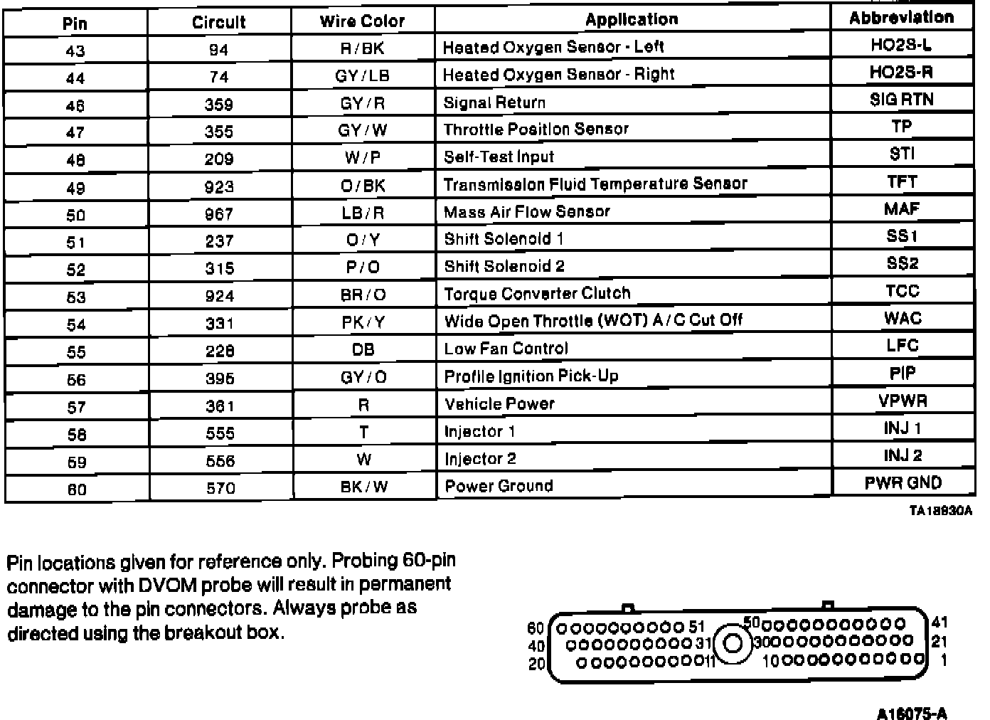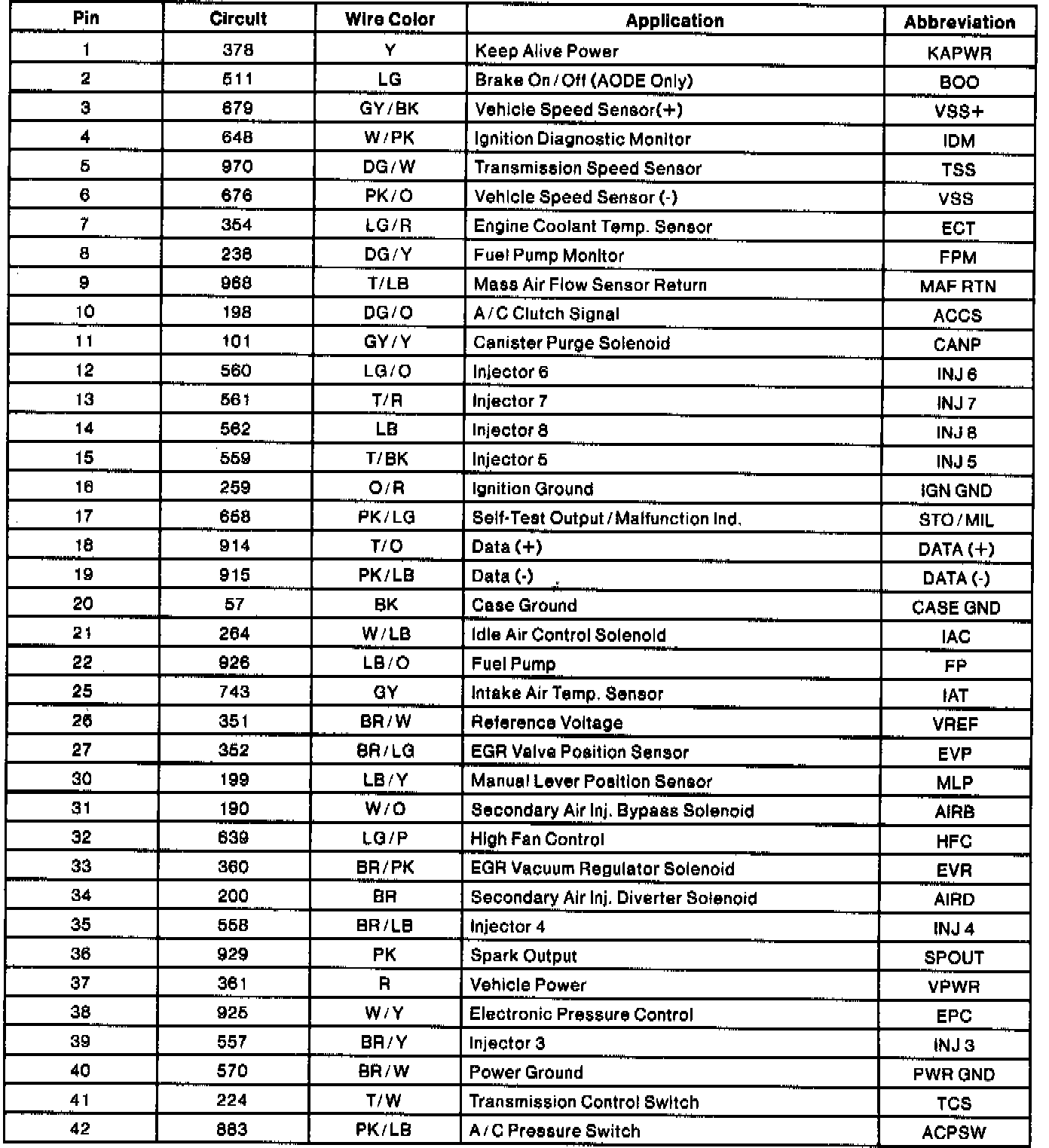 Powertrain Control Module (PCM) Connector Pin Usage:
