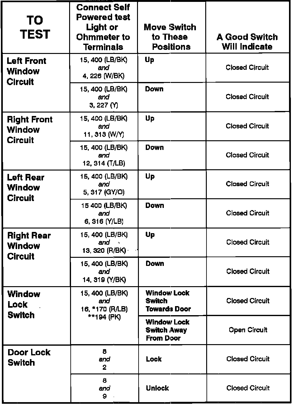Master Window/Door Lock Control Switch