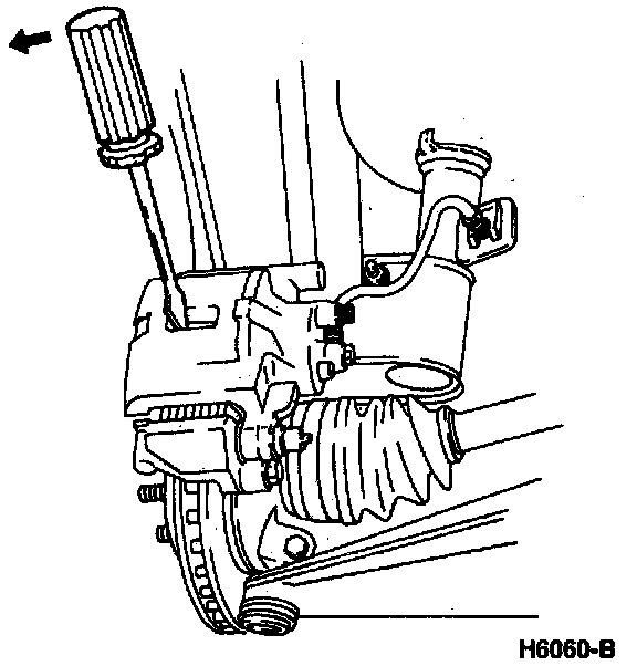 4. Using a screwdriver, pry the front disc brake caliper outward.