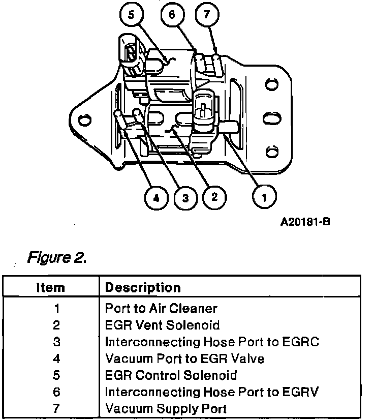 The system consists of two solenoids, EGR Control (EGRC) and EGR Vent (EGRV). These two solenoids operate with the EGR Valve Position (EVP) Sensor to form a feedback loop. The EGRC and EGRV solenoids regulate vacuum to the EGR valve to maintain the EVP sensor output at a value set by the PCM according to various engine parameters.