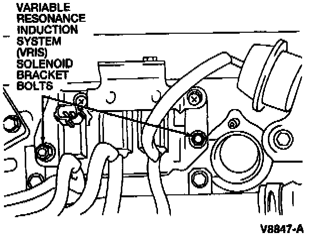 3. Remove the two VRIS solenoid bracket bolts.