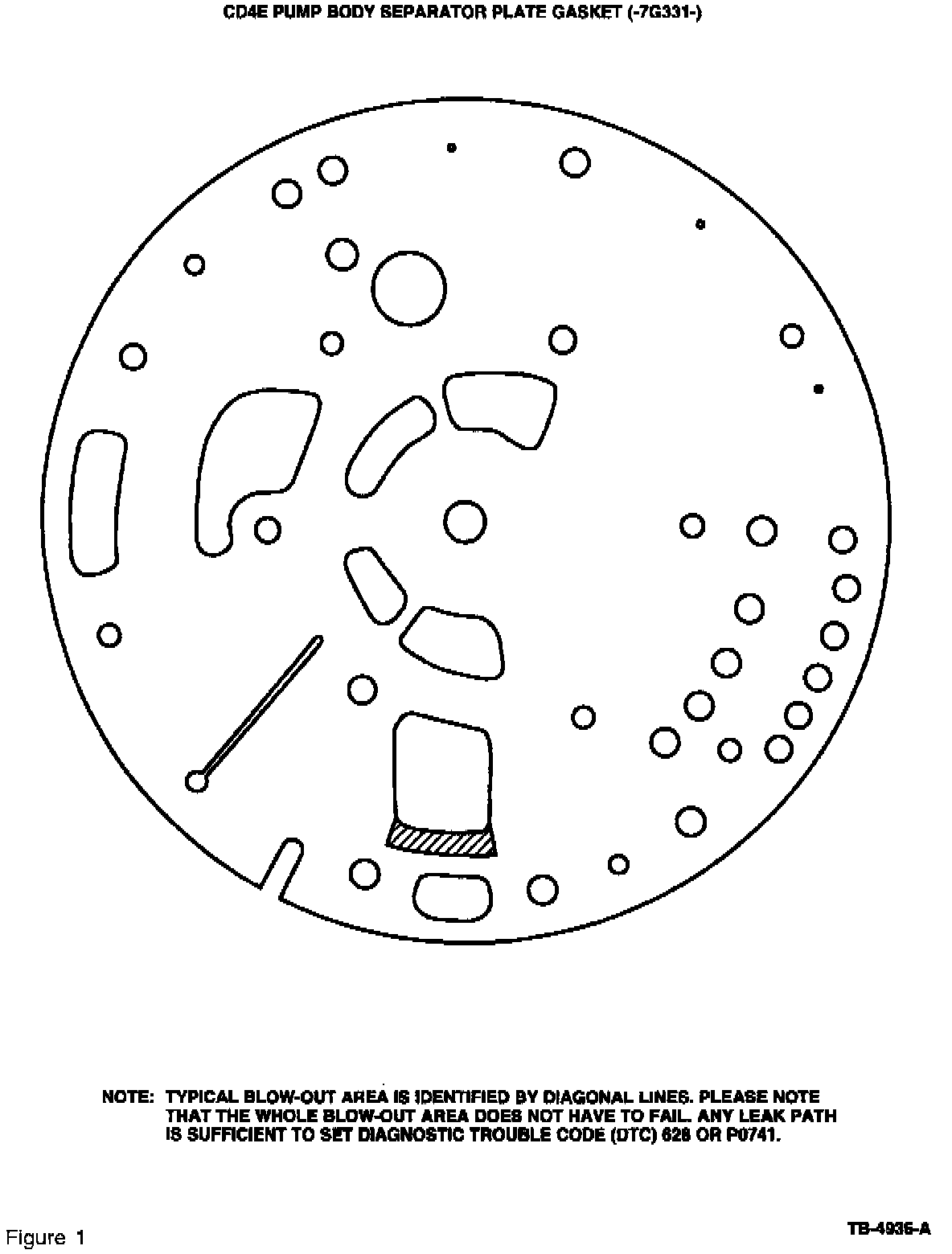 11. Remove pump assembly from transaxle. Disassemble pump support from pump body, being careful not to damage pump body separator plate gasket. Compare the gasket to Figure 1. Is the pump body separator plate gasket blown-out?