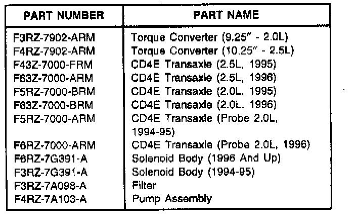 ^ Yes - Replace transaxle. Do not repair (except for 1997 vehicles, repair all 1997 vehicles until remanufactured transaxles become available).
