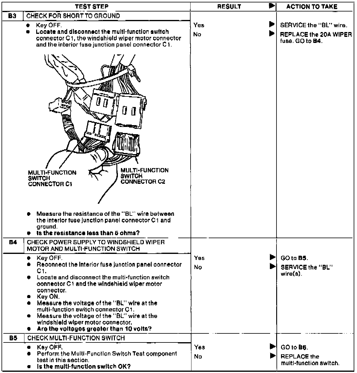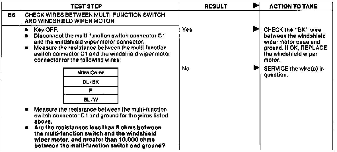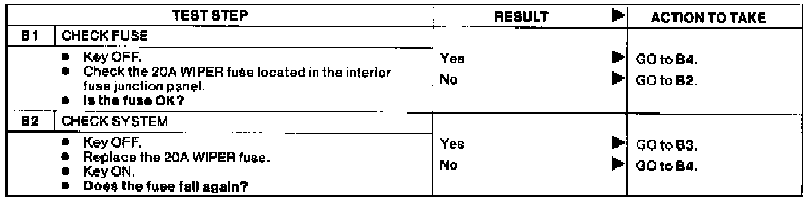 Test B: Windsheild Wipers Inoperative, All Control Switch Positions.: