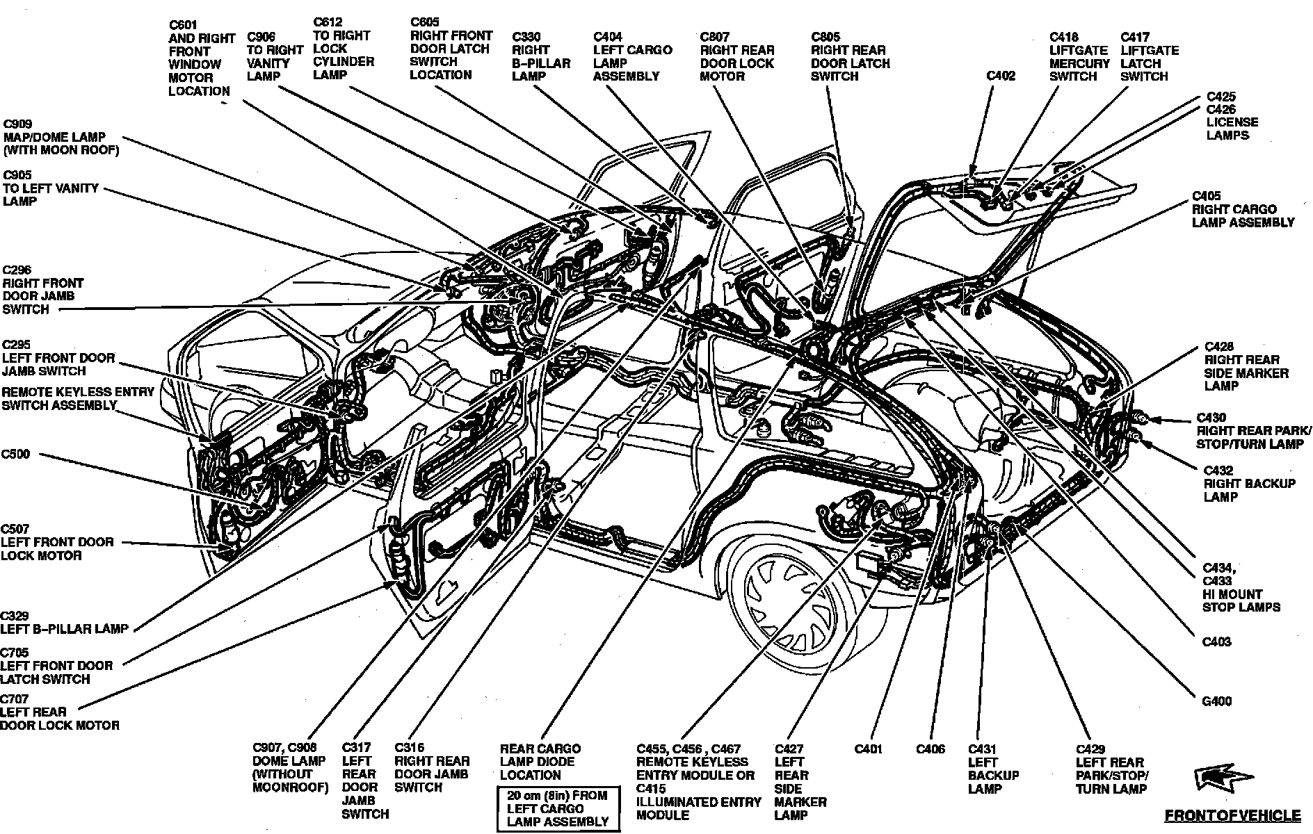 The Remote/keyless Entry Module is located in the rear of the LH rear quarter panel, behind the wheel well.