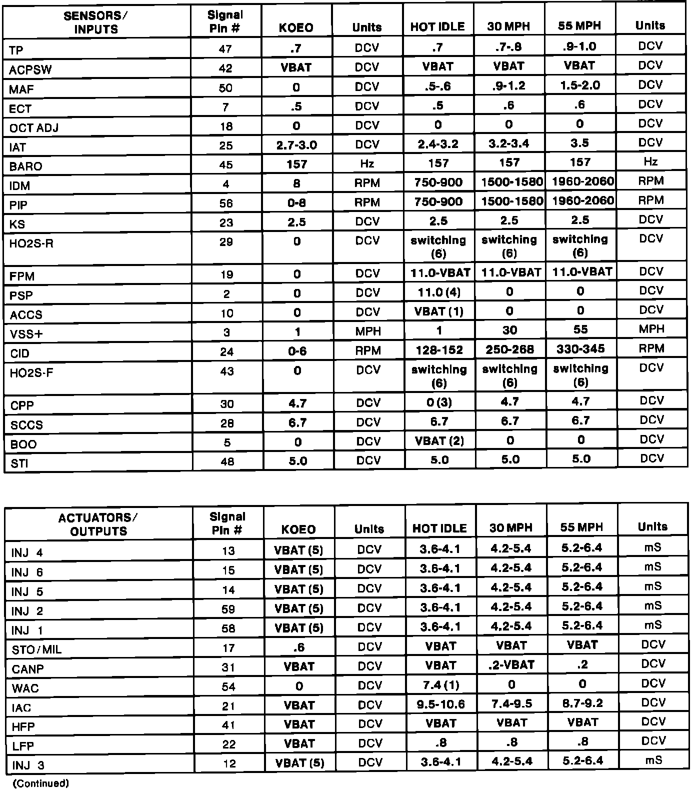 Some Electronic Engine Controls (EEC) devices such as Intake Air Temperature (IAT), Engine Coolant Temperature (ECT) are temperature dependent and values may vary. Other Values such as Idle Air Control (IAC) and Injector Pulsewidth (INJ) are calibration dependent and may vary also.