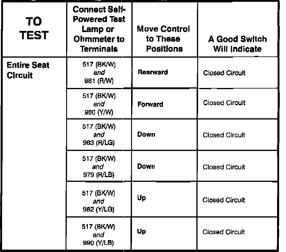 Power Seat Switch: Testing and Inspection