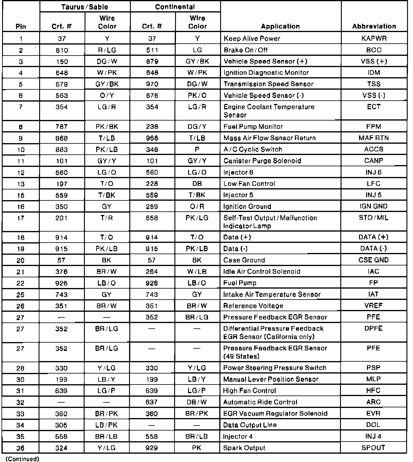 Powertrain Control Module (PCM) Connector Pin Usage: