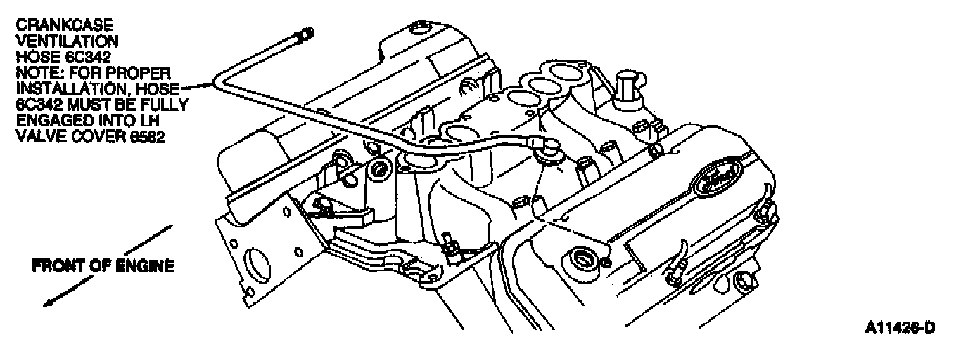 5. Connect rear crankcase ventilation tube at positive crankcase ventilation valve and upper intake manifold.