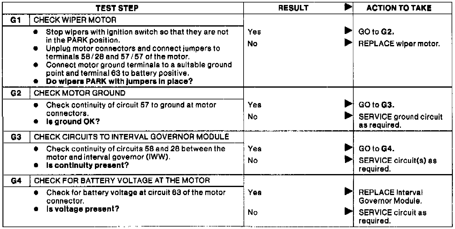 Test G: Wipers Will Not Park At Proper Position.: