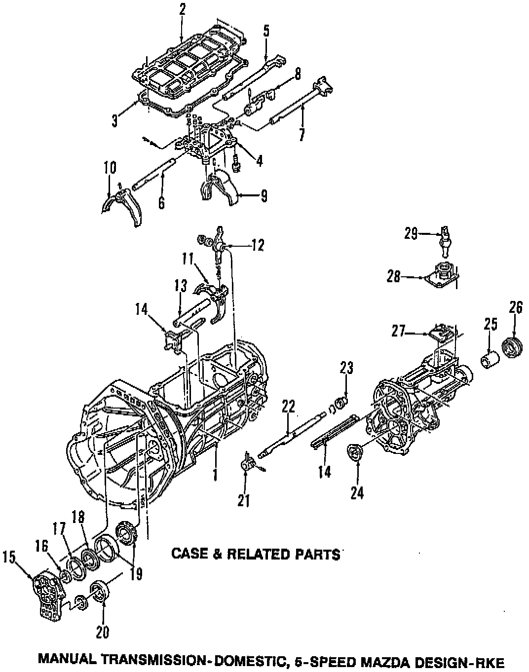 5 Speed, Mazda Design - RKE Case and Related Parts: