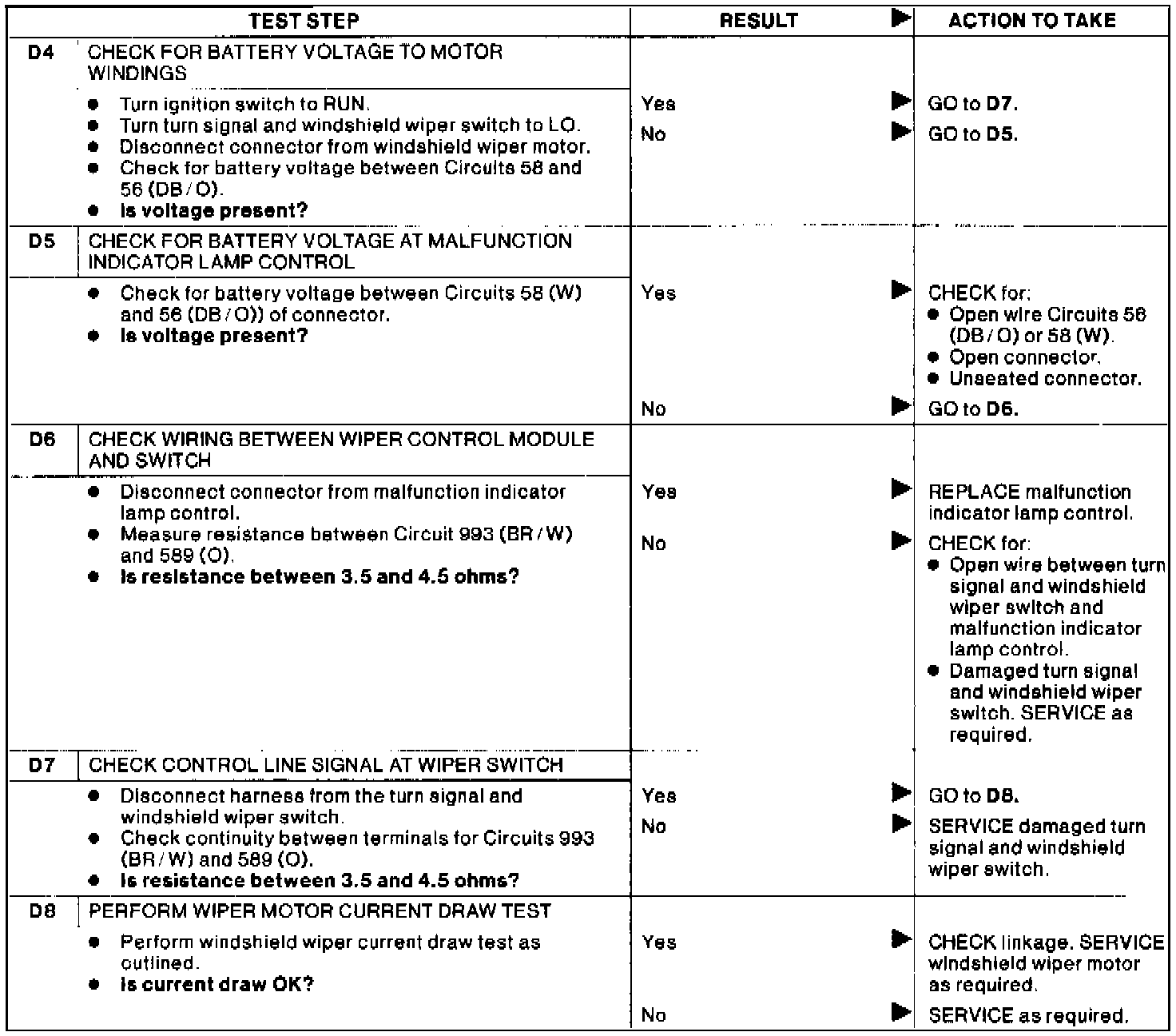 Test D: Windsheild Wipers Inoperative At Low Speeds.: