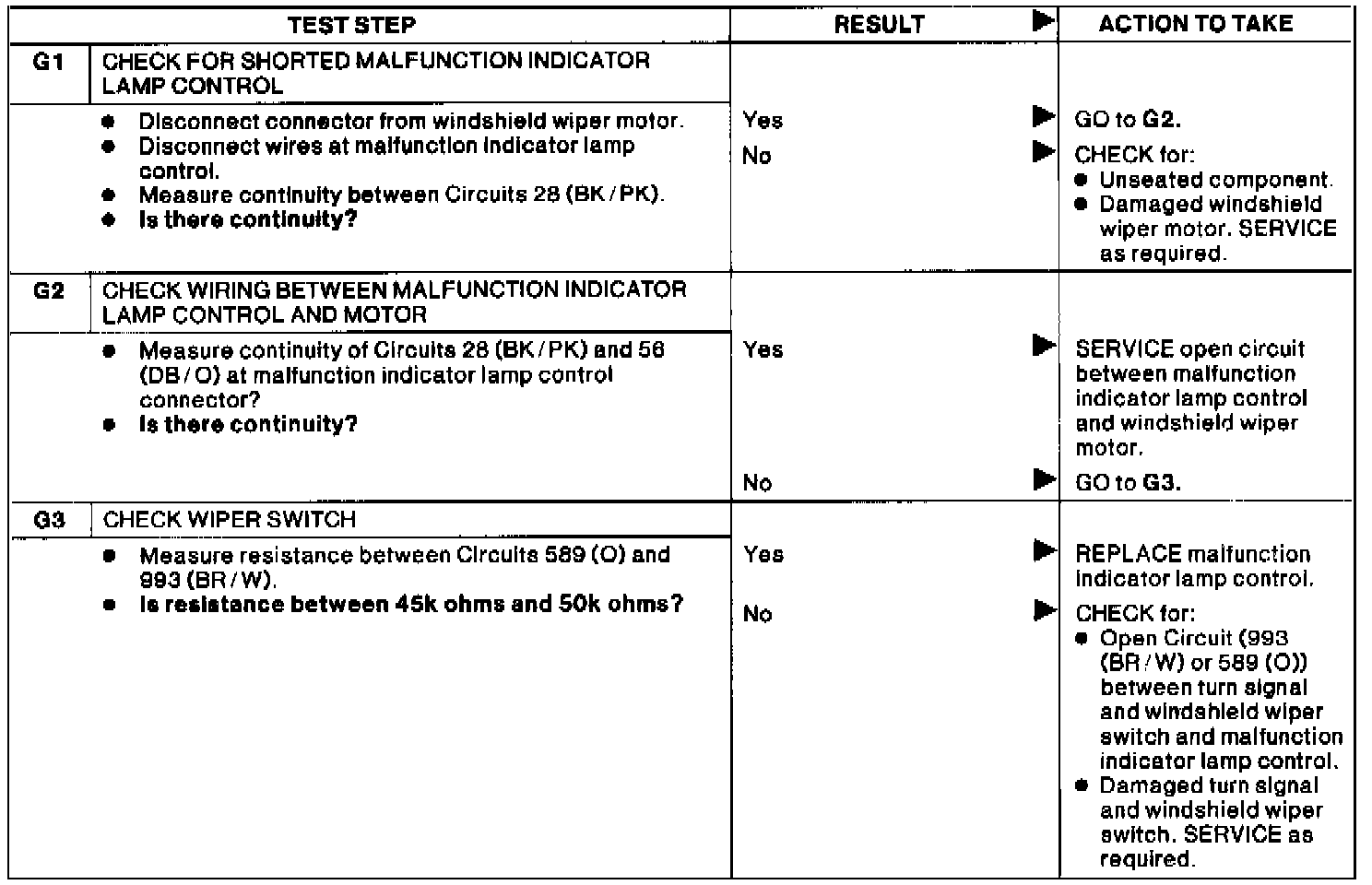 Test G: Wipers Continue To Run When Switch Is Turned Off.: