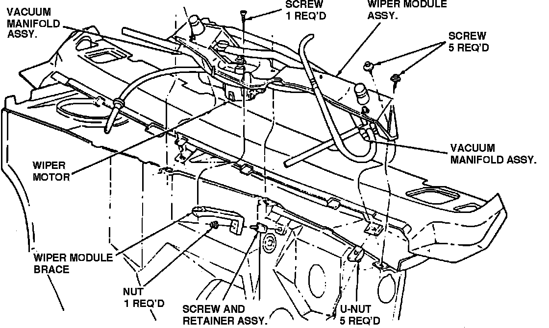 8. Reverse procedure to install, ensuring that wiper motor is in the PARK position prior to installation.