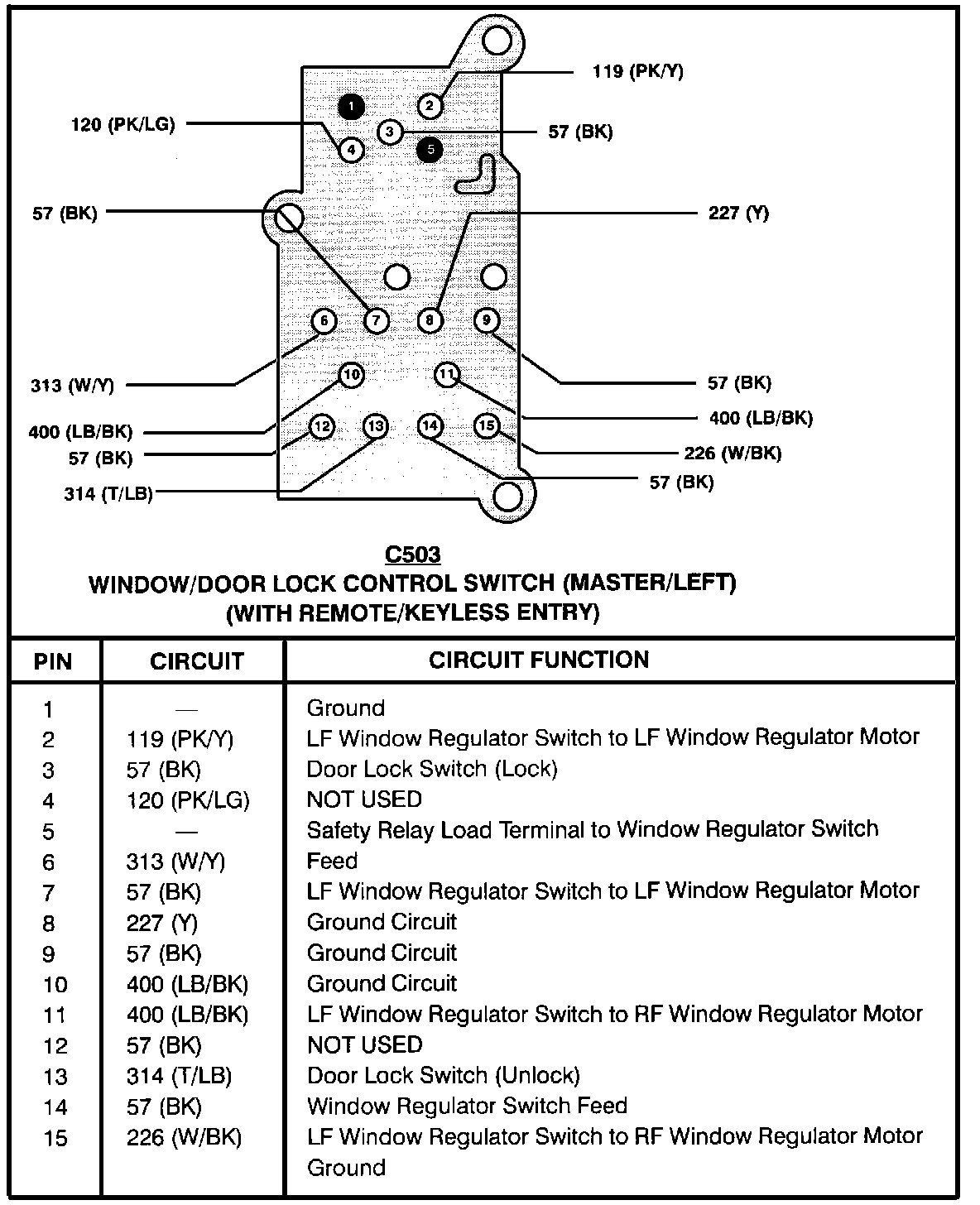 Window/Door Lock Control Switch (Master/Left) (With Remote Keyless Entry):