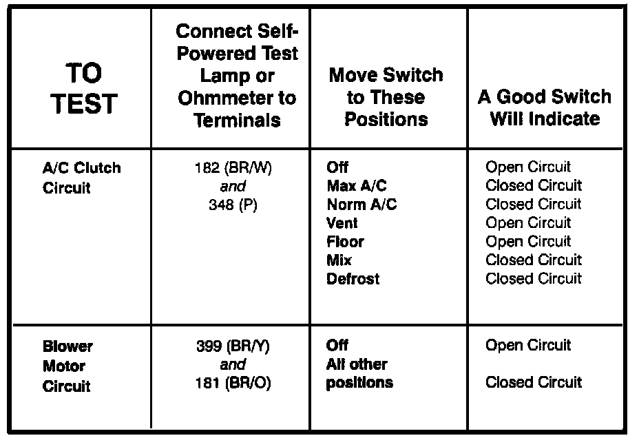 A/C Function Selector Switch - Component Testing Procedure: