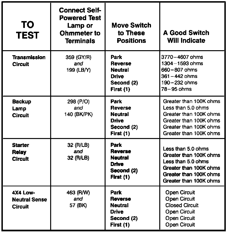 Transmission Range Sensor - Component Testing Procedure: