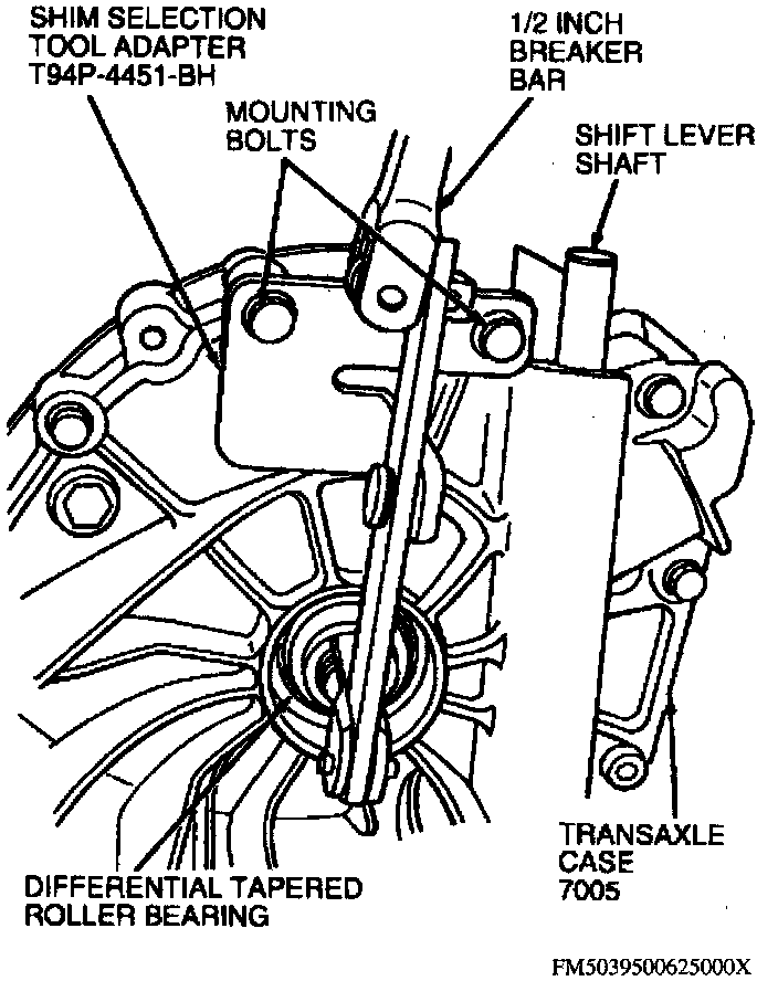 CAUTION: Do not raise required shim value; internal transaxle components will be damaged due to incorrect preload.