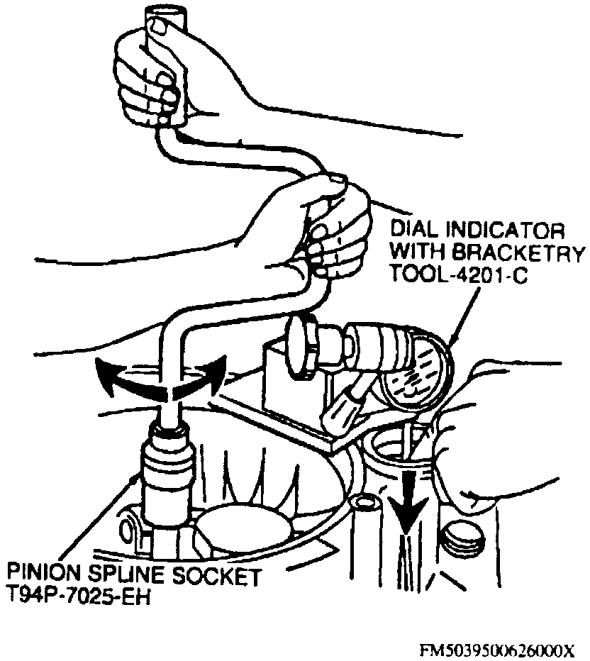 27. Record dial indicator reading with differential in full-up position, then repeat endplay measurement at least three times and average all measurements.