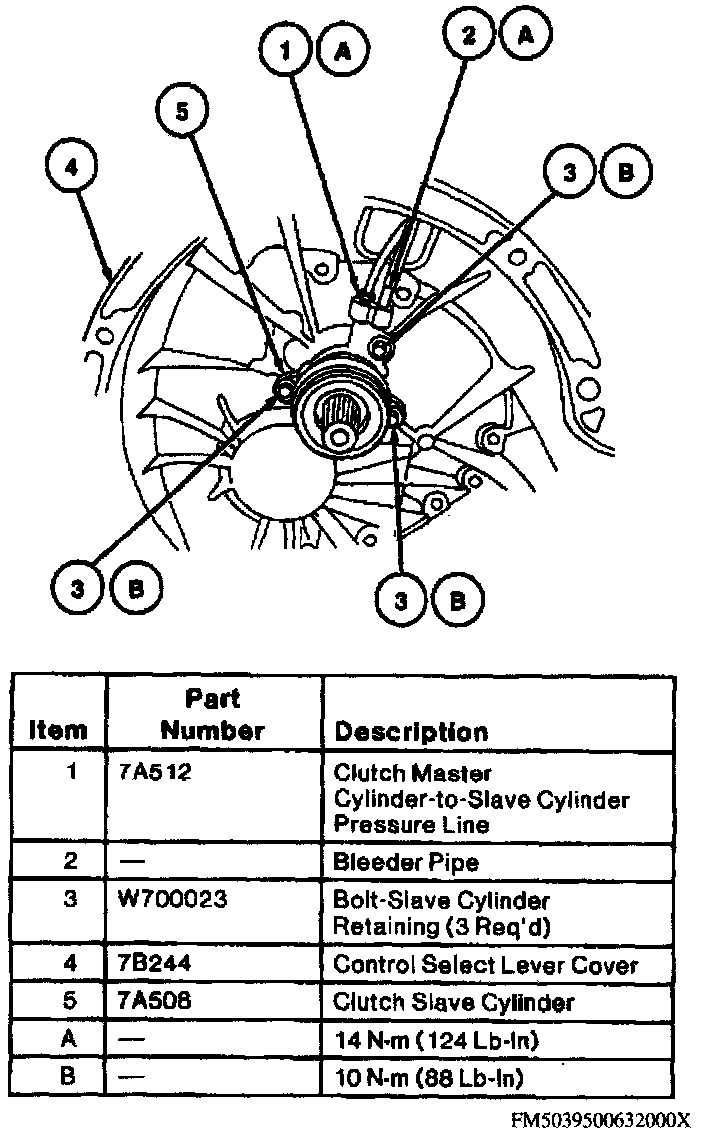 46. Install clutch slave cylinder on clutch housing by sliding down over input shaft, then install hydraulic pressure line and bleeder pipe. Tighten all fittings and bolts to specifications.