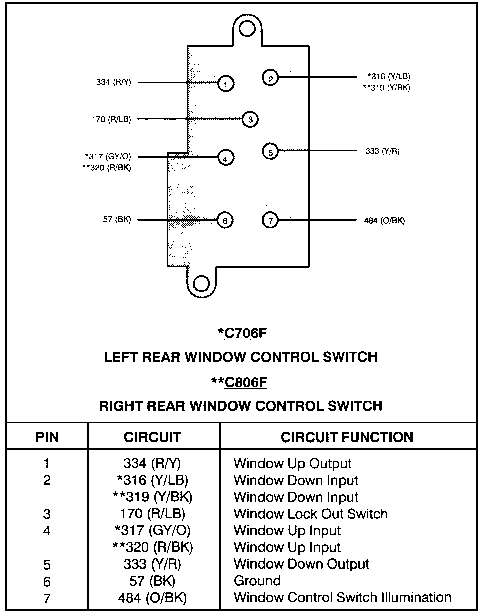 Left Rear Window Control Switch/Right Rear Window Control Switch: