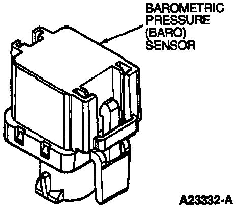The Barometric Pressure (BARO) sensor is a variable capacitance sensor that, when supplied with a 5-volt reference signal from the Powertrain Control Module (PCM), produces an analog voltage that indicates barometric pressure. The sensor signal is used to determine altitude to adjust timing and quantity of fuel to optimize engine operation. The output of the barometric pressure sensor is one of the variables used to calculate glow plug on time.