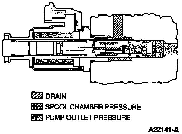 The pressure regulator valve is a pulse-width modulated valve operating at 400 Hz. The pulse width is modulated from a duty cycle of 8 to 60% to control ICP pressure from 3448-20685 kPa (500-3000 psi). The regulator valve is mounted in the high-pressure pump and achieves injection control pressure regulation by discharging excess oil through a shuttle valve into the front cover and back to sump.