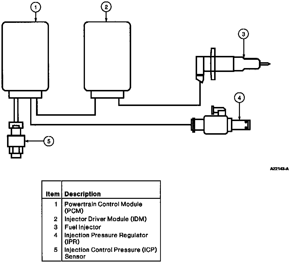 Pressure control in the injector control pressure system is closed loop. It is controlled by the Injection Pressure Regulator (IPR) valve, the Injection Control Pressure (ICP) sensor and the strategy in the Powertrain Control Module (PCM).